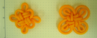 -- 作者:小禾 -- 发布时间:2004/11/13 21:17:13 -- hello~ 吉祥结可分穿套式及压迭式两种编法… 而这里我们是用压迭式的方法完成吉祥结 因此,我们在做第一次的压迭时是采逆时针的方向, 而关键就在第二次的压迭的不同,就会使结体产生不同的变化 第二次的压迭您可顺时针方向压1或压1.5或压2等…… 而压1出来的效果就是如第一楼第一个图左边的那个结… 若压1.5则是第一个图右边的那个结…… 不知这样清不清楚…您可以先试试看… 您也可以参考冰凌姐姐吉祥结的教程………应该就会比较明白… |